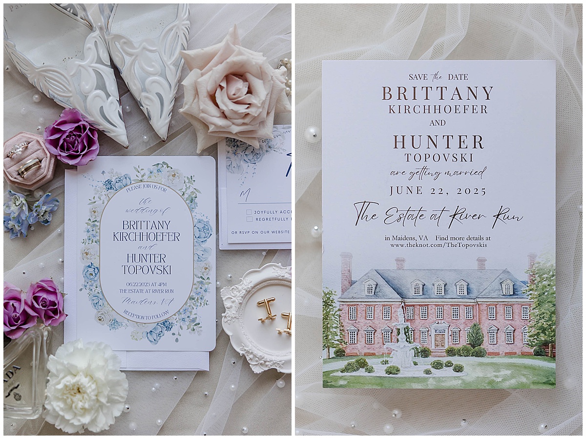Nestled along the James River just outside Richmond, The Estate at River Run is a luxury Virginia wedding venue known for its sweeping views, marble staircases, and elegant ballrooms. But the Wedgewood Ballroom is especially magical – its perfectly blue walls and crystal chandelier create the kind of light every artist dreams of.