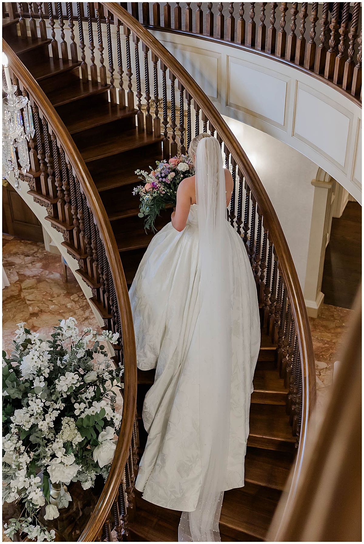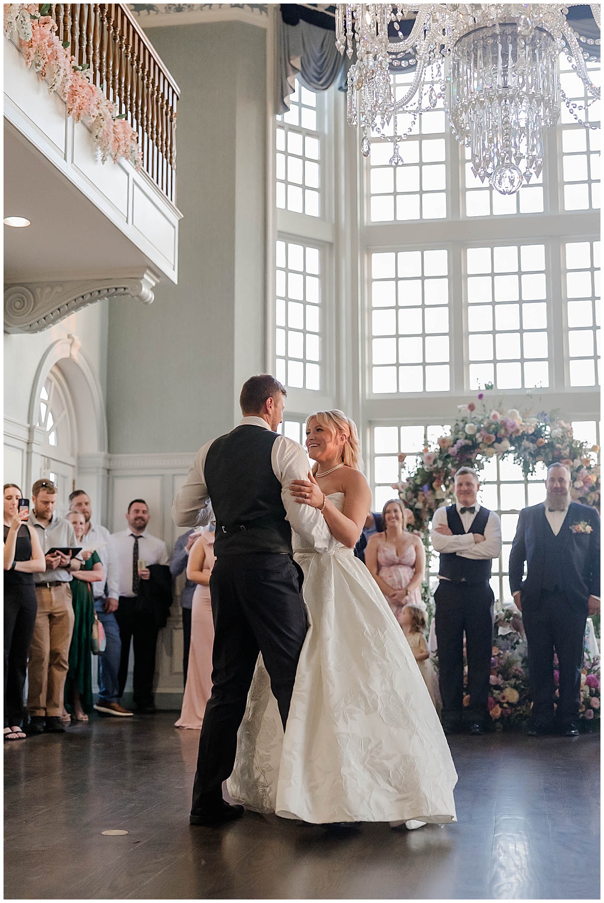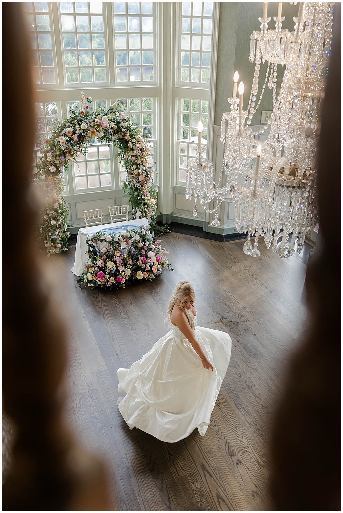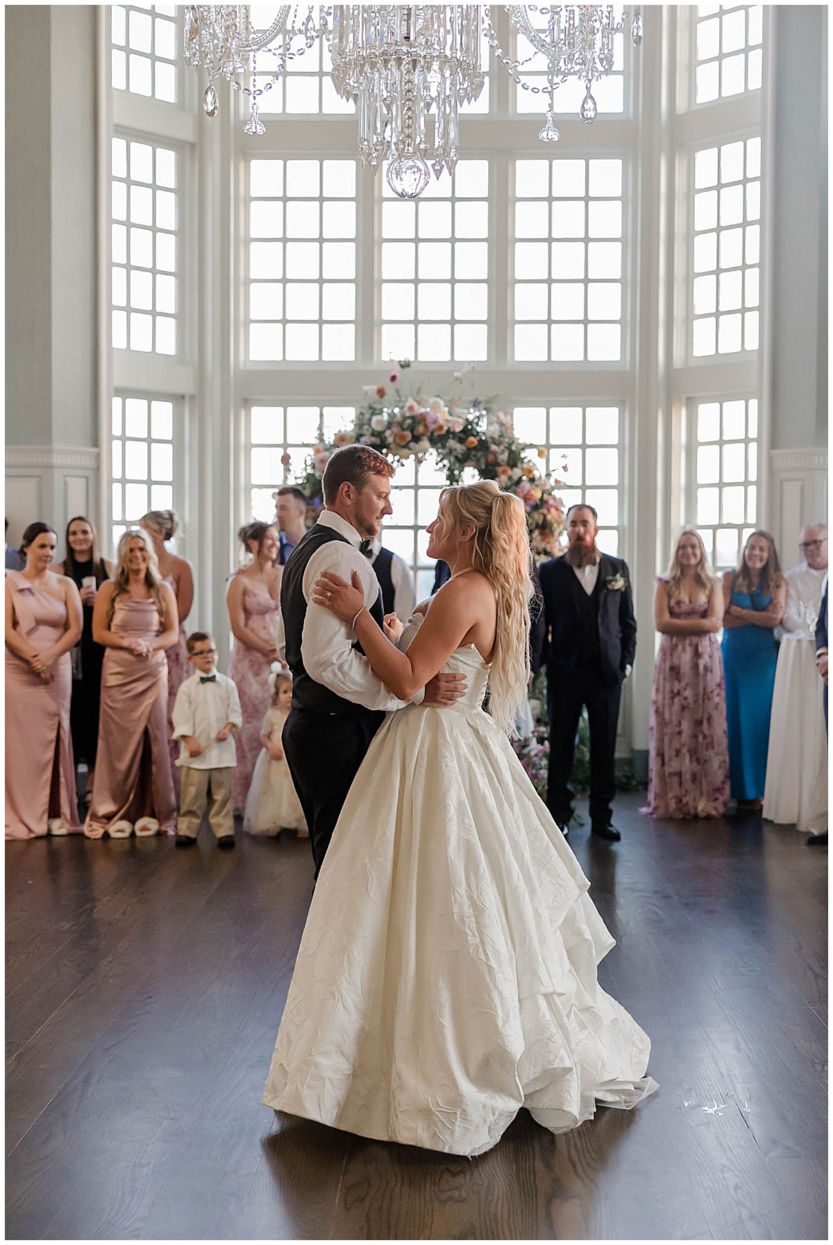 The truth is, every moment and angle of Brittany and Hunter’s wedding day would have made a great painting! As guests travel from arrival, to the ceremony, to cocktail hour, to dinner and dancing – every space brings a rich experience! We love that they chose to have their First Dance captured, featuring their favorite details of the ballroom and showing off the incredible floral design!