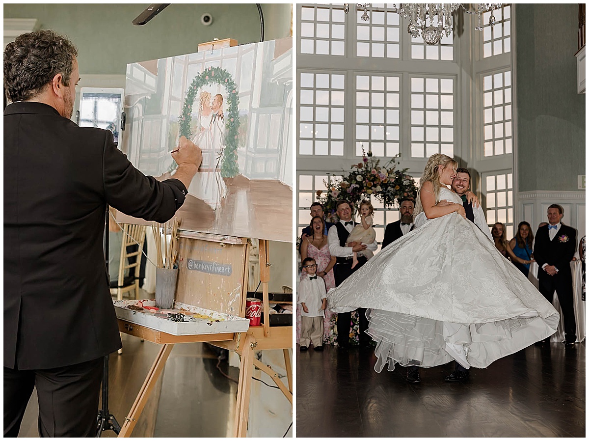 As they shared their first dance surrounded by breathtaking florals, Ben set up his easel nearby, brush in hand, capturing their much anticipated lift move! Yes, they choreographed their first dance and it included a LIFT!